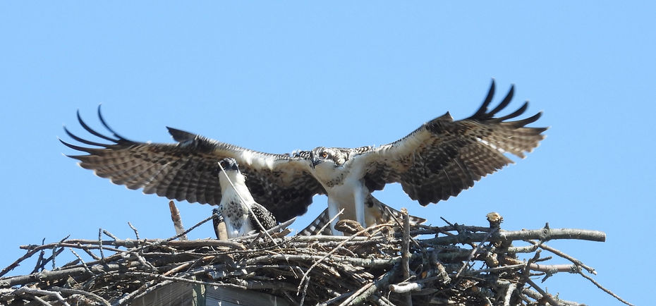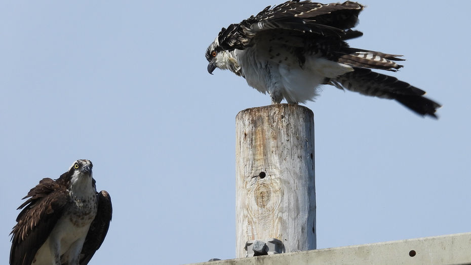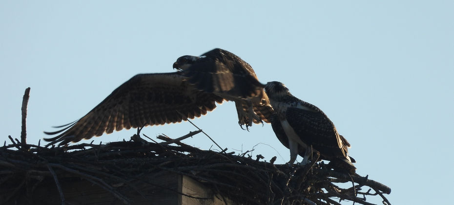 After a couple of turns airborne, the other osprey stretched its wings but did not attempt to fly (at least not while I was there).
