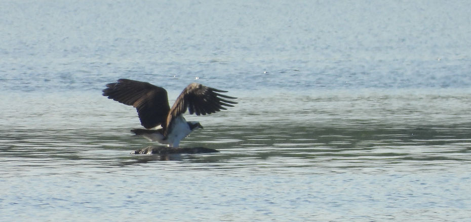 July 30, 2020 - Both of the young osprey were flying loops over Goose Bay and dropping in the water. I did not observe either of them catch a fish so I am unsure if they were failed attempts to do so, or they were dunking themselves for fun. To me it looked like they were just having a good time!